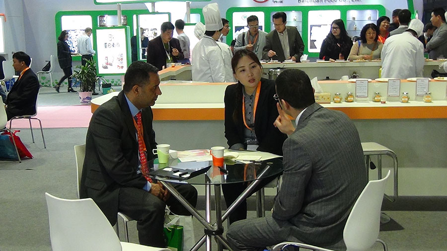 在本屆展會上,公司精心設計的寬敞、新穎、典雅展臺風格,層次分明的接待區、洽談區、產品展區、操作品評區,格外引人注目。隆重推出的香精、調味料創新產品和具有南北融合風味的休閑食品,以及相應的創新應用方案,使前來咨詢和洽談業務的國內外客戶絡繹不絕,稱贊有加,大批觀眾到現場體驗終端產品,進一步加強了國內外交流與合作,彰顯出公司技術、市場、品牌的優勢,取得了豐碩成果。