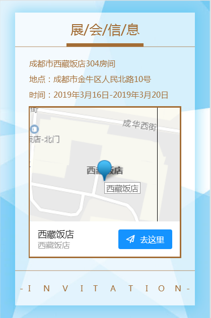 您好!我們誠摯邀請您于“2019年成都春季糖酒會“期間蒞臨成都市西藏飯店304房間京華集團展位,時間:3月16日-3月20日。